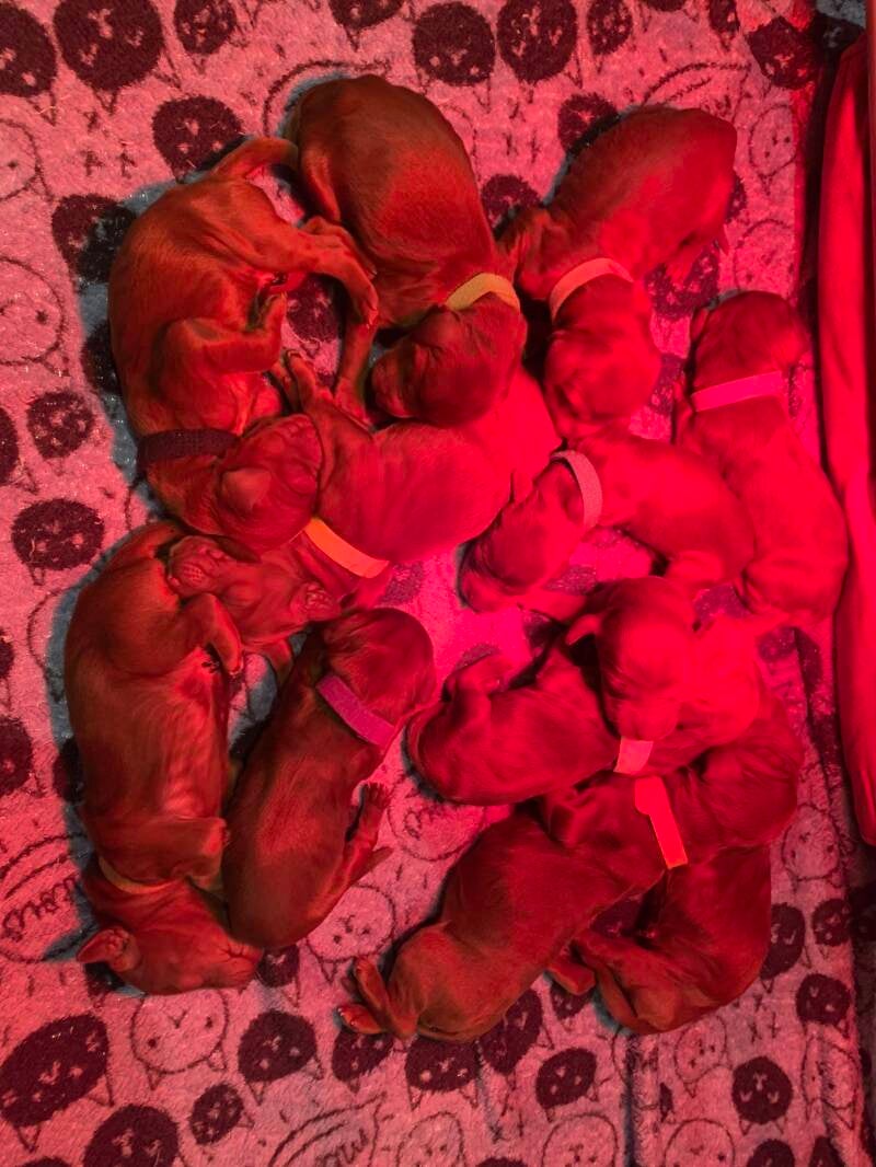 Hallo iedereen! Wij zijn gisteren geboren en zijn met zen 12! 7 teefjes en 5 reutjes! Mama en pups stellen het goed!🐶